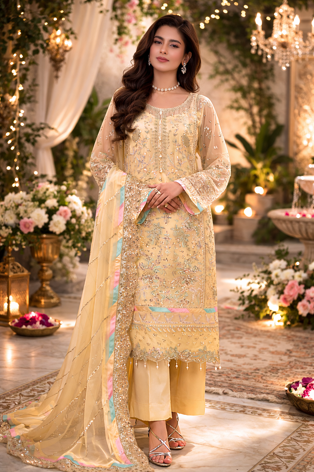 • Embroidered and sequined chiffon dupatta