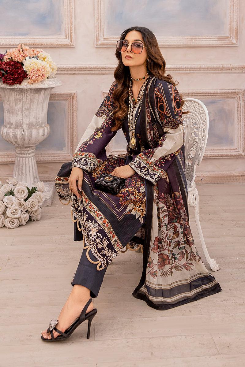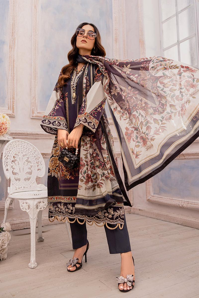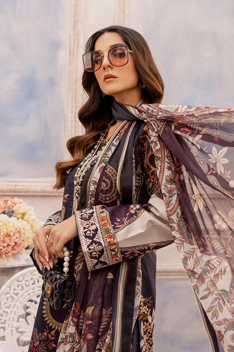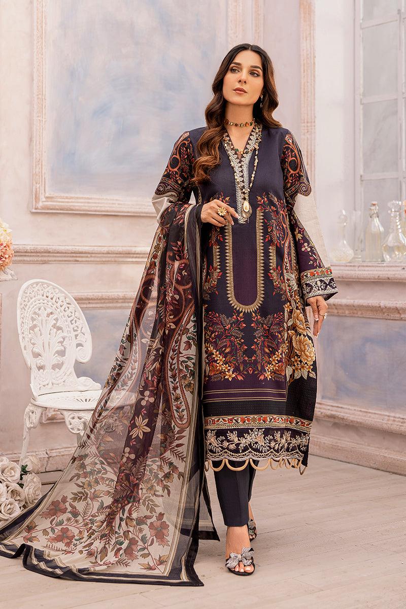 Additional Description: Digitally printed lawn shirt Digitally printed chiffon dupata Same shirt colour cotton lawn trouser Embroidered organza patti for front neckline Embroidered organza border for shirt front Embroidered organza border for shirt back Embroidered organza border for sleeves