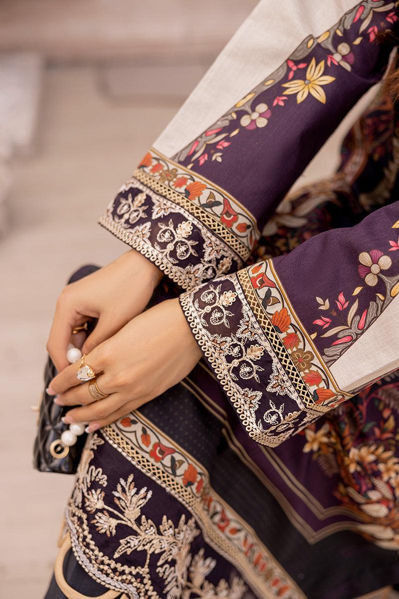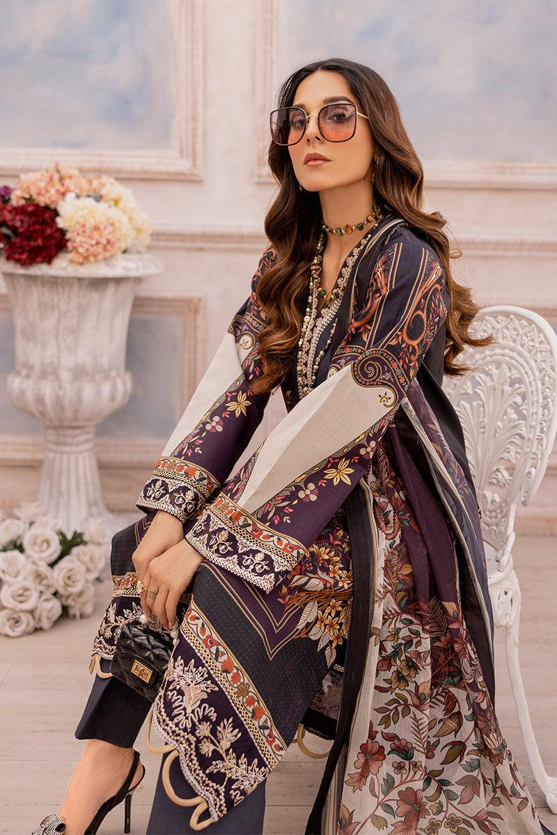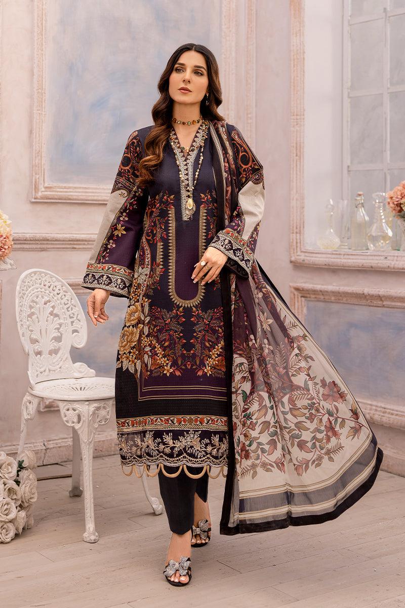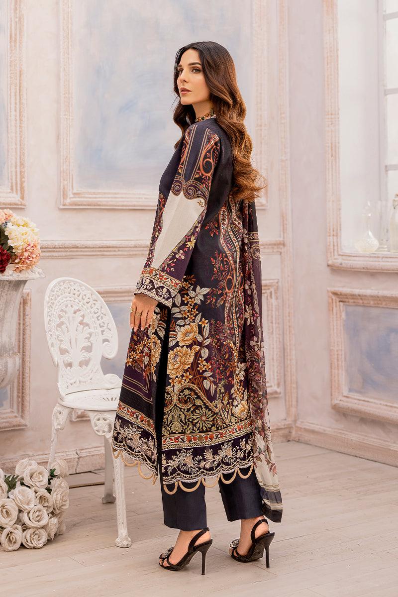 Additional Description: Digitally printed lawn shirt Digitally printed chiffon dupata Same shirt colour cotton lawn trouser Embroidered organza patti for front neckline Embroidered organza border for shirt front Embroidered organza border for shirt back Embroidered organza border for sleeves