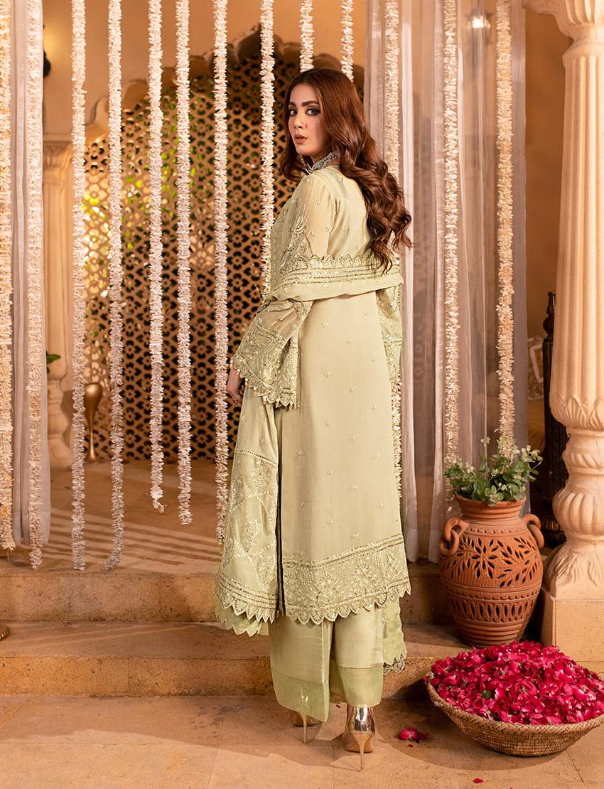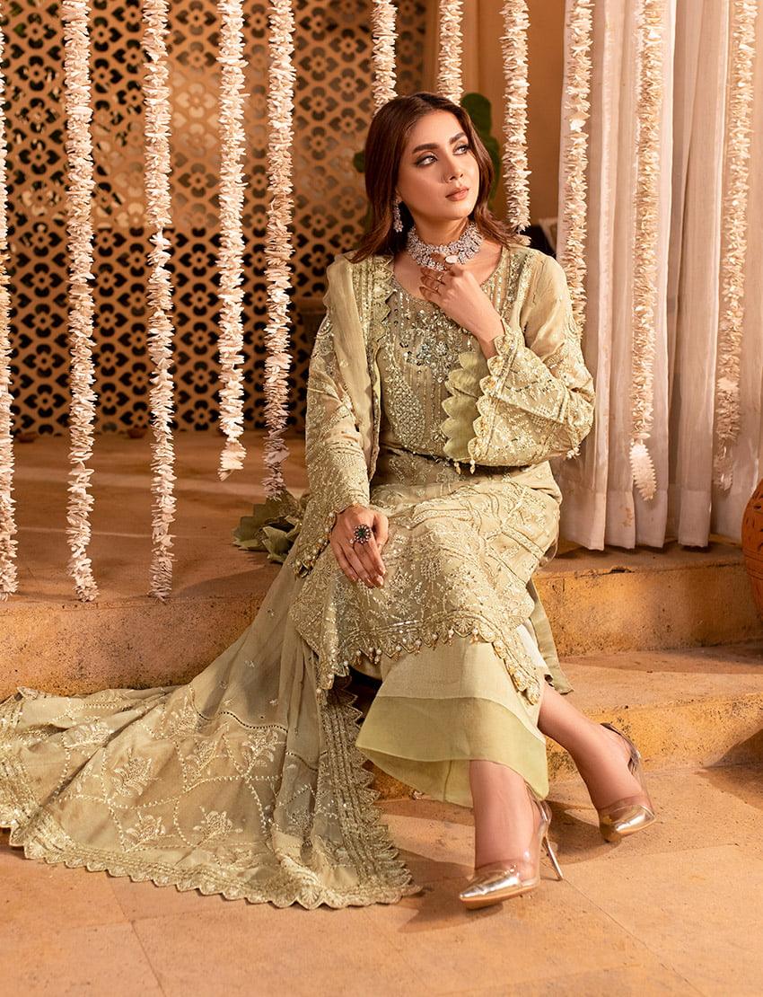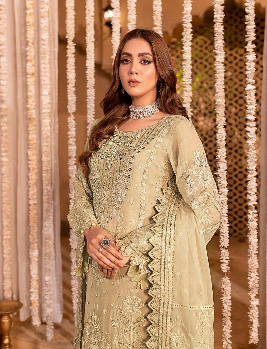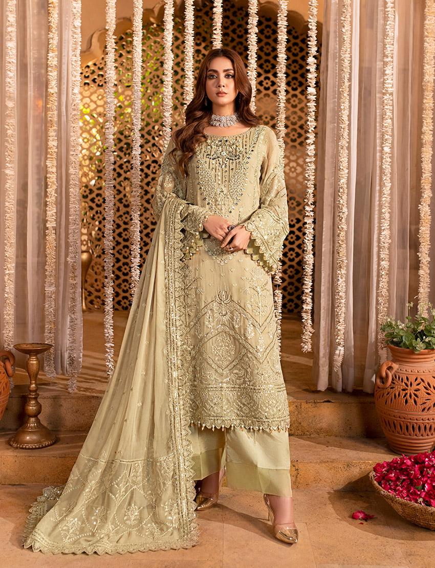 Embroidered & sequined chiffon side panal Embroidered & sequined chiffon sleeves Embroidered & sequined chiffon back