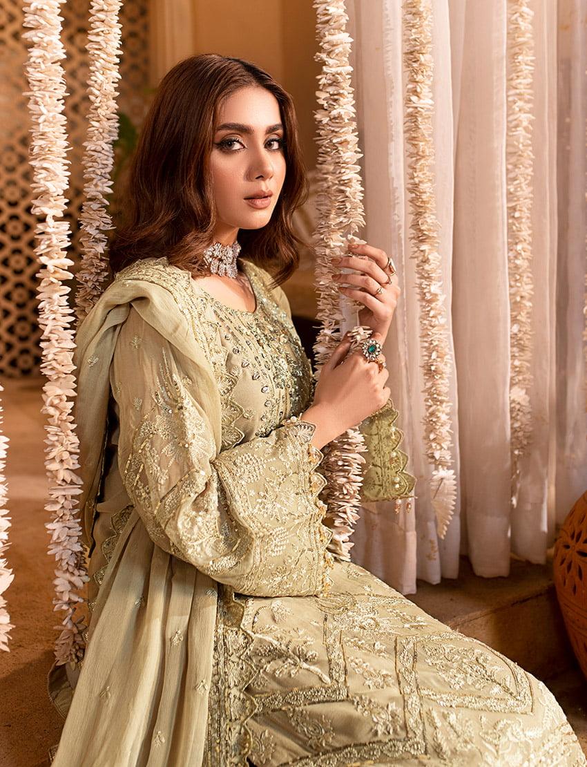 Adda-Worked, embroidered & sequined chiffon for front